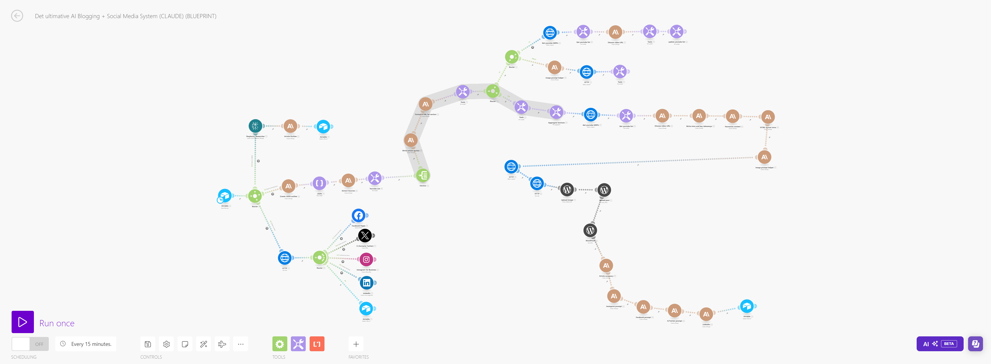 Det beskrevne automationsystem bruger Perplexity AI og Anthropic’s Claude til at automatisk generere og publicere indhold på flere platforme. Her er de væsentlige detaljer og funktioner: